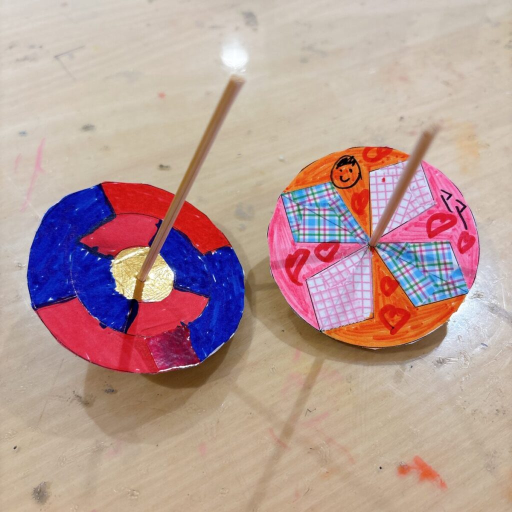 親子でそれぞれコマを作り、私が作ったものに「なにか書いてほしいな」と息子へお願い