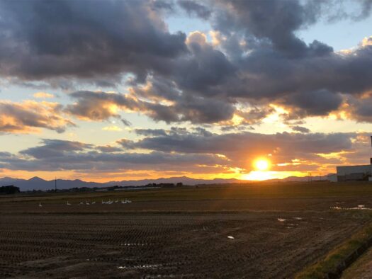 お買い物に行こうとしたら、夕日があまりにも綺麗だったので、車を停めて撮影しちゃた。平凡だけど、こんな風景を見てるのが好きなんですよね。