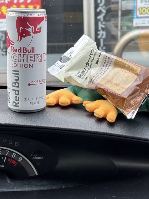 朝に購入したさくらんぼのレッドブルとバターバウム美味でした!でも、ノーマルのレッドブルのが好きやもです。笑